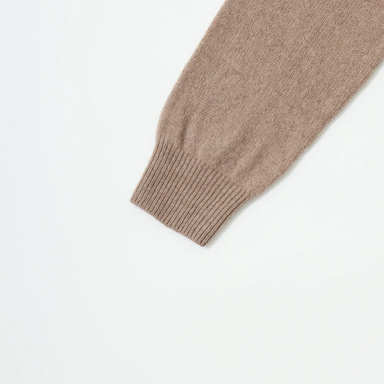 Pull col rond en laine d’agneau et cachemire, tricot seamless traditionnel, fabriqué en Écosse.
